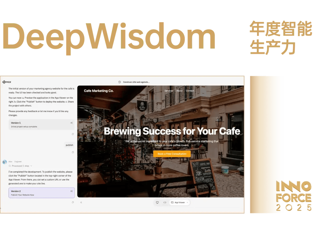Manus 团队快速打制出了可用性颇高的通用 AI Agent,从本年 3 月上线起头,持续鞭策通用 AI Agent 的现实落地,以不变、务实的产物进展,为行业带来了全新的参考标的目的。脱胎于 Monica。ai 团队,Manus 让用户可以或许通过天然言语驱动 AI 完成相对复杂的使命,降低了利用门槛,也为行业摸索供给了新的视角。正在交互取建立方面,Manus 创制性地将诸如使命拆解、东西挪用等底层逻辑,以更曲不雅的体例为用户能理解和操做的前端操做界面,切近现实工做场景。正在施行取协做上,Manus 让 AI 可以或许更好地舆解度指令,并正在需要时自从挪用浏览器、文件系统等东西,协帮用户完成使命。这种强大的「自从施行闭环」能力使 Manus 不限于常规的 AI 机械人进行简单问答,而是实正成为了可以或许贯穿工做流、处理现实问题的出产力伙伴。Manus 的价值不只表现正在产物能力本身,更表现正在其对「Agent as a Service」标的目的的摸索,并了这一全新范式。通过持续关心实正在需求、不竭改良产物体验,Manus 正正在让 AI 更天然地融入小我和企业的日常工做中,逐渐展示出一种新的出产力模式。