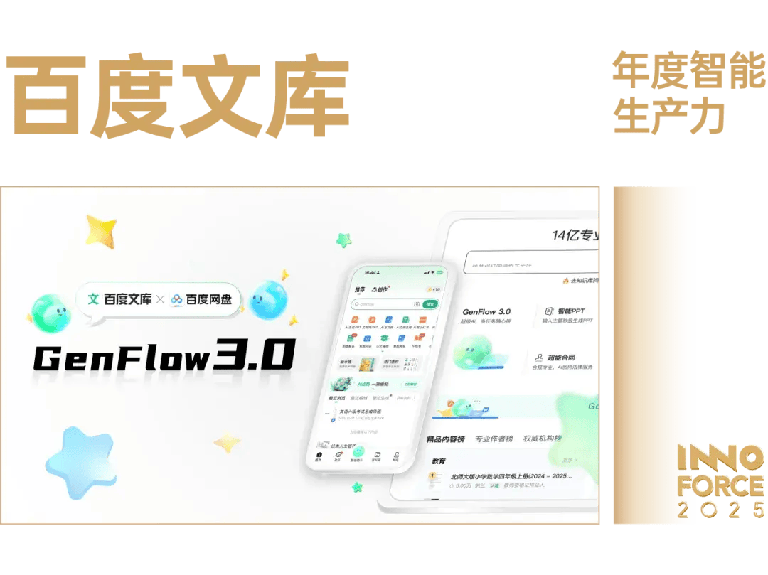 百度文库正在 2025 年,以 GenFlow3。0 从头定义了「会思虑、能干活的 AI」。做为全端通用智能体,GenFlow3。0 活跃用户已超 2000 万,具有更强大的通用化多模态能力,完全实现全模态内容的输入、处置和输出。GenFlow3。0 能够安排 100 个专家 Agent 构成的「AI 专家团」,正在 3 分钟并行完成 5+复杂使命,实现「分钟级交付、过程可干涉、回忆可逃溯」,打通公私域学问,抹平东西鸿沟,将 AI 变为「超等出产力」,帮力每小我成为超等个别。通过全新升级的回忆核心,GenFlow3。0 通过全局回忆能力,处理了 AI 的「目生感」,更懂用户的需乞降偏好。同时,GenFlow3。0 还能够自从挪用 Office Agent,文库自研「多模态融合编纂器」,供给内容创做到编纂的一坐式办事。上述成绩的实现,得益于其「公域+私域」生态劣势 :百度文库超 18 亿的专业内容取百度网盘海量的小我授权数据,形成了的学问图谱;同时,正在计谋上打破了「肌肉回忆」,文库沉构为「一坐式 AI 内容获取和创做平台」;其底层的 MoE(夹杂专家模子),以及沧舟 OS、GenFlow 等根本设备的建立,不只可以或许实现精细化安排,还以「平易近用级」成本支持了复杂的 AI 办事,让普惠公共成为可能。文库 GenFlow3。0 将 AI 实正改变为取人并肩协做、施行复杂工做流的「专家级团队」,是智能出产力的最佳实践。