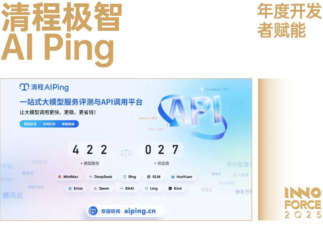 正在大模子 API 办事进入迸发期、市场呈现高度碎片化的布景下,开辟者面对着模子选型、集成取成本优化的诸多挑和。清程极智 AI Ping 精准地捕获到这一核肉痛点,为开辟者建立了一套完整的大模子 API 办事挪用处理方案。AI Ping 是清程极智旗下的大模子办事评测取一坐式挪用平台。2025 年,清程极智 AI Ping 已笼盖数十家大模子 API 办事商的数百个模子办事,监测延迟、吞吐、靠得住性等环节目标,汇总价钱、最大上下文长度和输入输出长度等环节消息,构成可验证的机能榜单。这背后次要是由于团队通过 7x24 小时的持续机能评测,成立了客不雅通明的评估系统,将本来恍惚、欠亨明的模子办事机能取成本数据化、可视化,为开辟者供给了高效决策的靠得住根据。更主要的是,AI Ping 不止于评测。它通过同一的 API 接入层和智能由安排功能,将复杂的分歧供应商办事封拆为简练的同一接口,并能为每一次 API 请求动态婚配兼顾成本取效率的最优径。这极大地降低了开辟者的集成难度和运营成本。从选型评估到高效接入,再到智能由优化,AI Ping 贯穿了大模子使用开辟的全流程,正正在成为开辟者生态的环节根本设备。它闪开发者从繁琐的底层办事比对和适配工做中解放出来,更专注于营业逻辑取使用立异,实现了对开辟者的深度赋能。