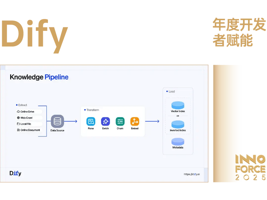 若是说 2024 年,Dify 让第一次感遭到「所见即所得」的 AI 使用搭建体验,那么 2025 年,Dify 正正在让这份创制力实正交到每一位创制者手中,让 AI 出产力正在各行各业的实正在场景中落地生花。做为一款开源生成式 AI 使用开辟平台,Dify 正在 2025 年完成了两个环节升级:插件市场(Marketplace)的推出,让全球开辟者可以或许像搭建积木一样组合取共享智能模块,鞭策了 AI 使用搭建的「组件化立异」;同时,全新的学问流水线(Knowledge Pipeline)从头定义了 RAG,让企业级学问办理进入可视化建立取高度自定义的新阶段。Dify 打破了企业的数据孤岛——无论是格局复杂的文档,仍是分离遍地的学问,都能被轻松接入取处置。从数据导入、索引建立到上下文检索,全链愈加清晰通明,也实现了全程可逃踪。Dify 的开源社区持续强大,GitHub Star 数冲破 10 万,跻身全球百大开源项目行列。2025 年的 Dify,帮帮企业取小我以更曲不雅的体例建立智能工做流,让更多创制者可以或许以本人的节拍去摸索、建立,并掌控属于本人的 AI 创制力。Dify 正正在成为毗连全球开辟者取智能使用建立的新型根本设备。